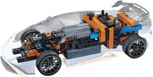 Acest kit Lamborghini oferă tot ce ai nevoie pentru a asambla propriul tău vehicul sport. Conține mai mult de 250 de piese, care vor ghida copiii pe drumul cunoașterii mecanicii și ingineriei. Kit-ul dispune de un mecanism cu roți zimțate și două moduri de joc - manual și motorizat - care pot fi activate cu ajutorul unui comutator manual.