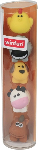 Un set adorabil de cinci jucării pentru baie cu animăluțe de la fermă – câine, vacă, puișor, cal și oiță. Datorită plasticului moale și formelor rotunjite, sunt ideale pentru prindere ușoară de către mânuțe mici și asigură multă distracție în cadă, acasă și în călătorii. Susțin imaginația și motricitatea fină.