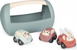 Două mașinuțe de oraș cu fețe de animale și o mașină de pompieri cu scară sunt rezistente la șocuri și pregătite pentru joaca de zi cu zi.