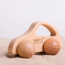 Mașinuța este realizată din lemn de fag de calitate, cu finisaj natural, ideal pentru mâinile sensibile ale copiilor.