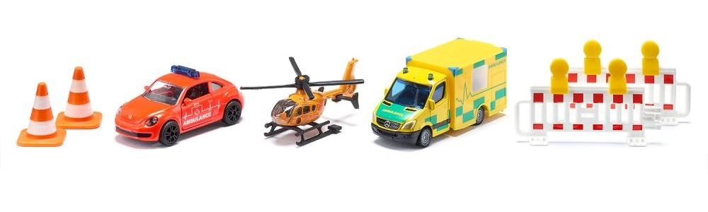 Pregătește-te pentru misiuni palpitante de salvare cu setul de la SIKU. În pachet găsești trei modele metalice detaliate – ambulanță, vehicul de salvare și elicopter de salvare – completate cu conuri și bariere pentru scenarii realiste. Datorită ușilor care se deschid, rotorului rotativ și roților care se învârt liber, copiii se vor bucura de ore întregi de joacă creativă.