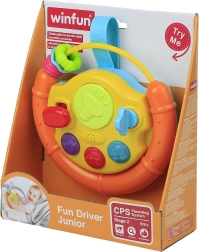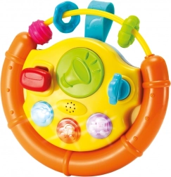 Acest volan colorat este o jucărie de activare ideală pentru cei mici. Copiii sunt atrași de luminile clipitoare, melodiile vesele și diferitele stimuli tactili. Părțile mobile precum biluța, mașinuța sau peștișorul invită la explorare și exersează prinderea și coordonarea mână–ochi.