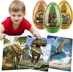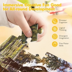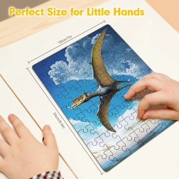 Puzzle-ul dublu față în ou din colecția DINO EGGs Collection de la CubicFun oferă distracție dublă. Pe de o parte, veți găsi o ilustrație a pterosaurului, în timp ce pe cealaltă parte un model abstract cu fosile de dinozaur.