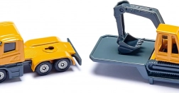 Piese metalice și din plastic, anvelope din cauciuc și protecție spate asigură transportul sigur al utilajului. Excavatorul inclus în set este un model unic care reflectă aspectul real, cu părți mobile. Este un model atractiv pentru iubitorii de vehicule de construcții din toate categoriile de vârstă.