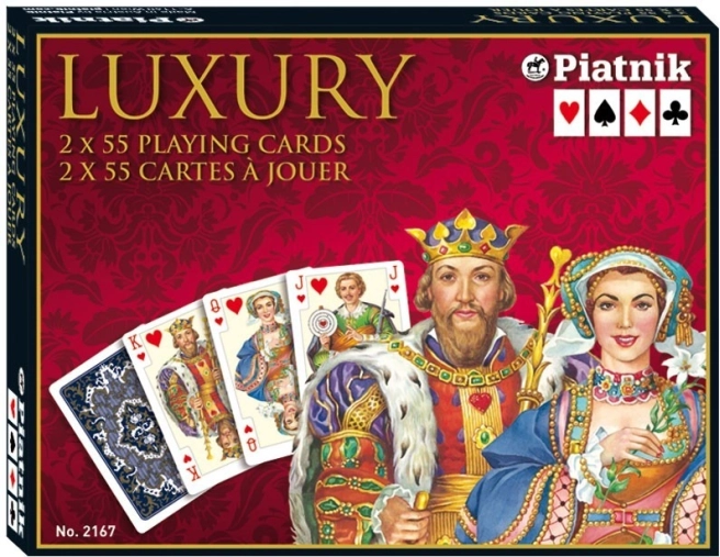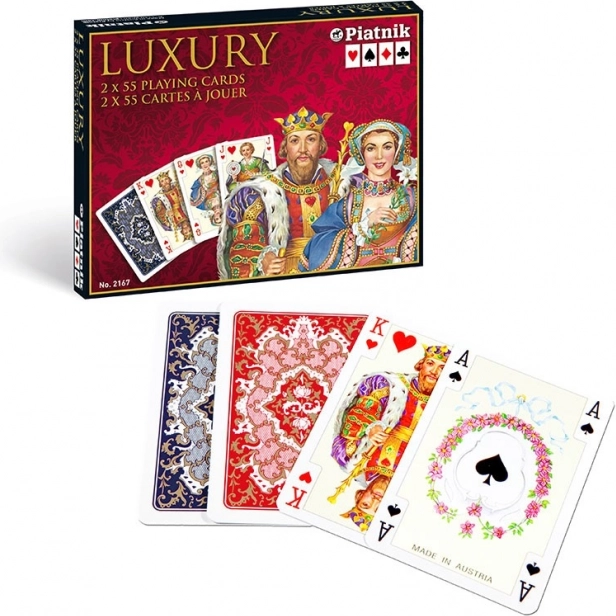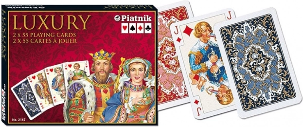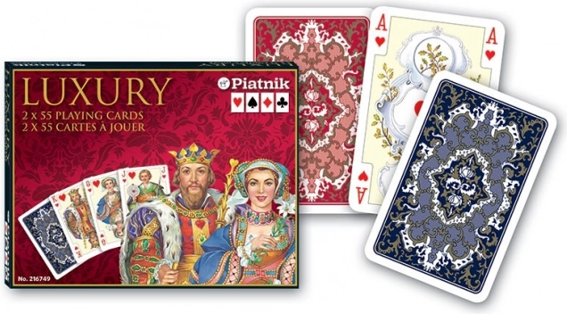 Cărțile de lux Piatnik reprezintă vârful eleganței datorită prelucrării atente și utilizării materialelor de calitate. Fețele cărților sunt decorate cu figuri unice Piatnik, în timp ce versourile sunt proiectate pentru a fi atractive estetic și ușor de distins.