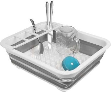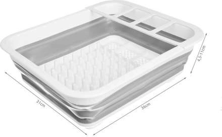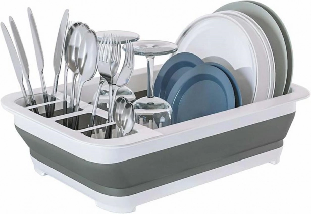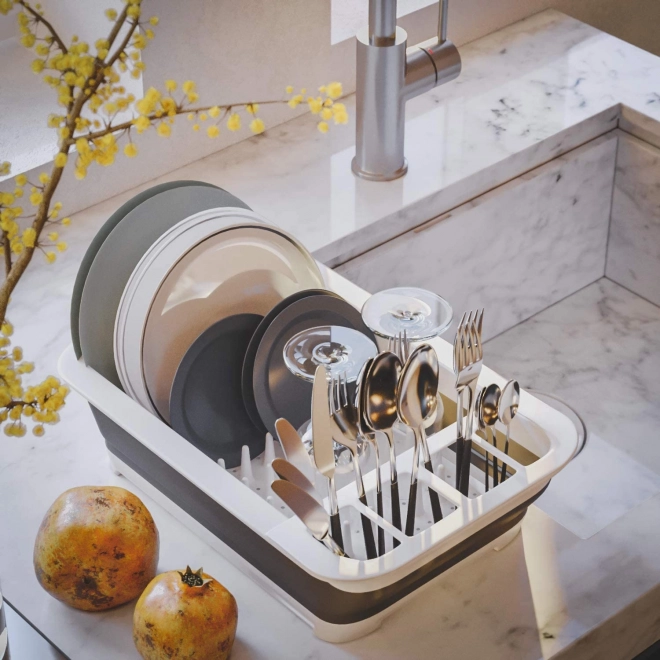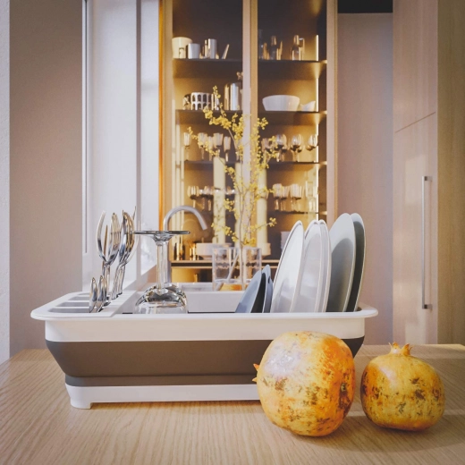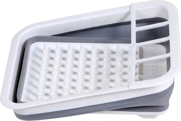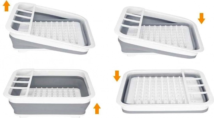 Uscătoarea pliabilă de vase din silicon oferă un mod rapid și eficient de a usca vasele, fiind gata de utilizare în doar câteva secunde. După utilizare, se pliază ușor, ocupând un spațiu minim de depozitare.