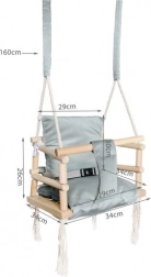 Datorită designului minimalist și materialelor de calitate, se potrivește perfect interioarelor moderne. Montajul este simplu, funiile cu diametrul de 10 mm asigură o prindere fiabilă. Leagănul este destinat copiilor care pot sta în șezut fără ajutor, cu o capacitate de încărcare de până la 25 kg.