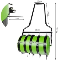 Menține gazonul în formă perfectă cu tăvălugul și aeratorul 2‑în‑1 practic. Cadrul robust și materialele rezistente asigură o durată lungă de viață, în timp ce cele cinci module interschimbabile cu țepi perforează eficient solul până la 4 cm adâncime pentru o mai bună alimentare cu aer, apă și nutrienți. După umplerea cilindrului cu apă (până la 35 l) vei tasa ușor solul și vei apăsa semințele pentru o creștere uniformă.