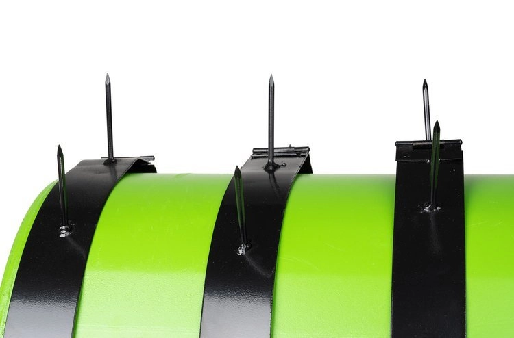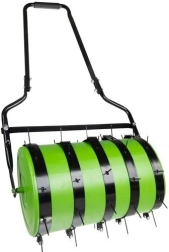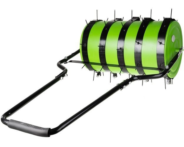 Cilindrul verde, neted, poate fi umplut cu apă până la 35 litri, obținând greutatea ideală pentru nivelarea suprafeței și apăsarea semințelor.