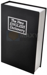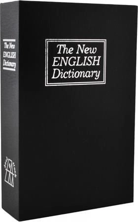 Coperta amintește de un dicționar englez, astfel încât seiful de pe raft se confundă perfect cu celelalte cărți și oferă discreție maximă.