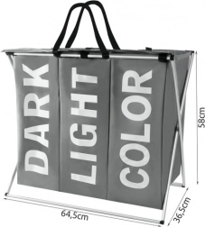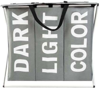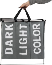 Acest coș de rufe spațios, cu un volum de aproximativ 130 l, oferă trei compartimente separate pentru haine închise la culoare, deschise și colorate. Interiorul impermeabil protejează materialul exterior de umezeală și murdărie, în timp ce cadrul din aluminiu stabil menține forma și ușurează manipularea. Datorită capacului cu închidere cu arici, mirosurile neplăcute rămân în interior.