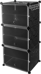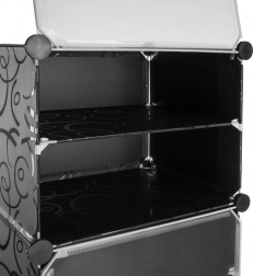 Panourile din plastic rezistent, cu model decorativ, și conectorii metalici asigură stabilitate și durabilitate chiar și la utilizare zilnică. Montajul este intuitiv, fără unelte speciale, iar datorită dimensiunilor compacte dulapul economisește spațiu în hol, dressing sau dormitor.