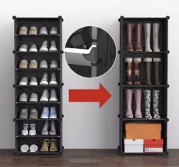 Dulapul modular pentru pantofi este o soluție practică pentru locuințe mici și mari. Datorită construcției tip kit îl adaptați ușor spațiului și tipului de încălțăminte, iar la nevoie îl puteți extinde cu module suplimentare. Ușile transparente protejează de praf și oferă o vizibilitate rapidă a conținutului, astfel găsiți imediat perechea căutată.