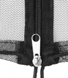 Marginea inferioară este echipată cu șnur de strângere cu greutate, care menține plasa ferm pe poziție chiar și atunci când bate vântul. Fermoarul central permite intrarea și ieșirea comodă, fiind ideală pentru utilizare zilnică în grădină, pe terasă sau lângă piscină. Datorită instalării rapide și plierii ușoare, plasa se depozitează fără probleme.