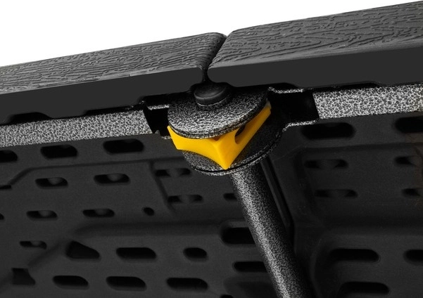 Căutați o masă mare și rezistentă pentru aniversări în familie, grătare sau evenimente? Această masă pliabilă de 180 cm oferă suficient spațiu pentru servire și ședere confortabilă pentru grupuri mai mari. Blatul din HDPE cu aspect atractiv de lemn este solid, flexibil și ușor de întreținut. După pliere, masa se transformă într-o geantă plată, pe care o transportați și o depozitați cu ușurință.