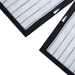 Plasa fină din poliester, cu tivuri ranforsate, lasă să treacă lumina și aerul, dar împiedică eficient intrarea insectelor. Potrivită pentru utilizare zilnică.