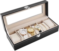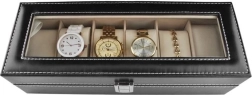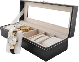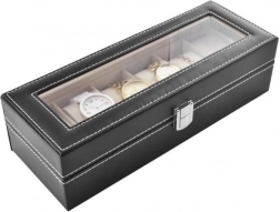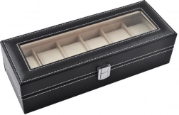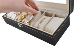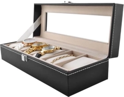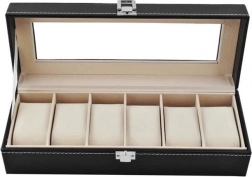 Vă prezentăm un organizator de ceasuri elegant, care dispune de până la 6 compartimente separate. Acest organizator nu este destinat doar pentru ceasuri, ci puteți stoca în siguranță și alte bijuterii, datorită materialului moale din interior, care protejează împotriva zgârieturilor.