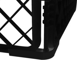 Țarcul este format din patru pereți cu o poartă practică. Siguranța dublă a încuietorii previne deschiderea accidentală, iar marginile rotunjite minimizează riscul de rănire. Datorită sistemului simplu cu elemente care se introduc, puteți realiza un montaj rapid fără unelte, iar țarcul poate fi mutat ușor după necesități.