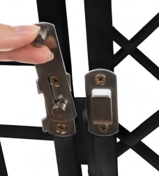 Ușa cu dublă siguranță împiedică deschiderea nedorită și menține animalul în siguranță în interiorul țarcului.
