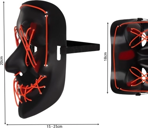 Masca LED cu iluminare de fundal este un accesoriu excelent pentru toate evenimentele și sărbătorile. Este proiectată să se potrivească tuturor și asigură confort datorită spumei moi pe frunte, care împiedică apariția presiunilor. Are orificii speciale pentru respirat ușor.