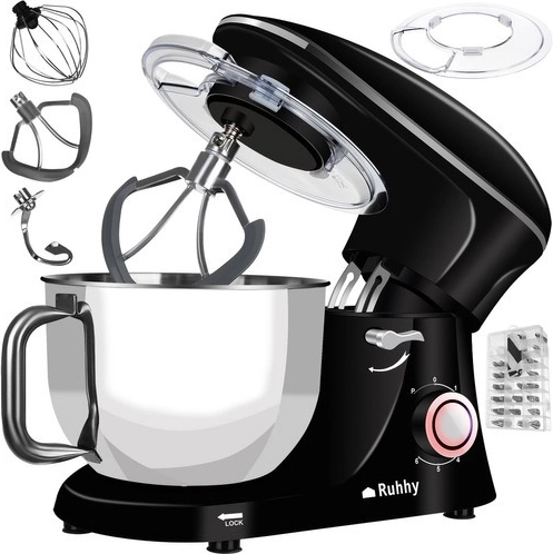 Robotul de bucătărie planetar Ruhhy cu ventuze antiderapante solide asigură stabilitate în timpul lucrului. Datorită sistemului planetar metalic și celor trei capete diferite - cârlig, tel și spatulă - puteți procesa perfect toate ingredientele și obține rezultate optime.