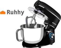 Descoperiți ajutorul practic pentru orice bucătărie: robotul de bucătărie 3în1 RUHHY combină sistemul planetar de amestecare cu transmisie metalică, blenderul din sticlă și mașina de tocat carne cu 3 discuri. Bolul mare de 6,2 l din oțel inoxidabil cu mâner, capac transparent anti-stropire și 6 viteze cu funcția PULSE asigură lucru curat și rapid la batere, amestecare și frământare.