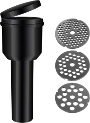 Pregătiți carne tocată acasă exact pe gustul dvs. Trei discuri cu granulații diferite și accesoriile pentru umplerea cârnaților extind posibilitățile în bucătărie.