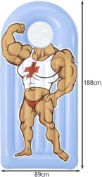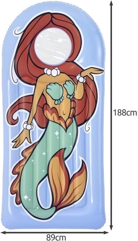 Fereastra transparentă integrată servește ca tetieră confortabilă – perfectă pentru relaxare și observarea sub apă. Sarcină maximă 90 kg și dimensiuni 188 × 89 cm oferă spațiu suficient pentru odihnă. Pachetul include o petică de reparație rezistentă la apă, astfel încât poți face mici reparații chiar lângă apă.