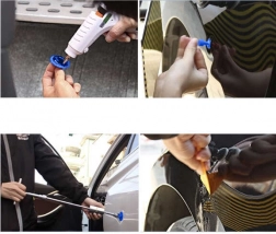 Cu acest set practic PDR, îndepărtați îndoiturile singuri, fără service costisitor. Ciocanul culisant cu mâner în T și „bureții”/tab-urile din nailon interschimbabile de diferite dimensiuni asigură extragerea eficientă a gropițelor fără a deteriora vopseaua originală. Ideal pentru caroserii după coliziuni minore, avarii în parcare sau după grindină.