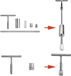 Mânerul în T și corpul din oțel, cu piese cromate, asigură rezistență, stabilitate și prindere confortabilă pentru o tracțiune controlată.
