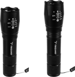 Lanterna robustă de 5 W utilizează diodă CREE și o lentilă convexă precisă pentru o bătaie lungă de până la 200–300 m (în funcție de condiții). Datorită zoomului reglabil lin poți comuta ușor între un fascicul larg dispersat și unul îngust, concentrat.