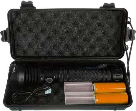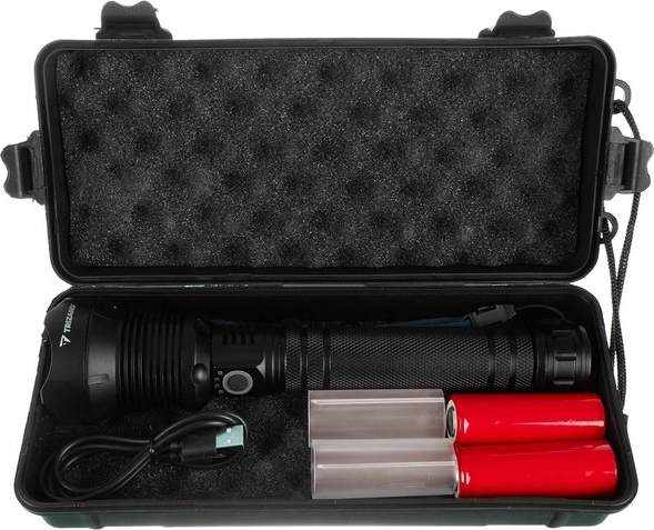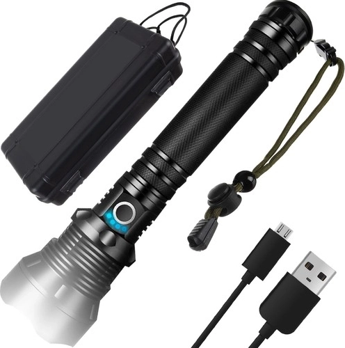 Lanternă cu diodă LED P70 puternică oferă iluminare incredibil de puternică de până la 4500 lumeni. Datorită celor trei moduri de iluminare, se poate adapta ușor pentru a satisface nevoile curente. Este echipată cu cablu de încărcare USB și vine cu acumulatoare.