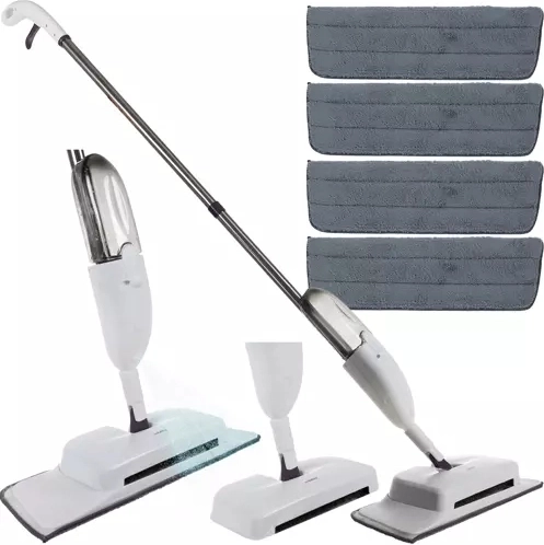 Setul include patru huse reutilizabile care sunt absorbante și ușor de curățat sub apă curentă sau în mașina de spălat la o temperatură de până la 60 °C. Mopul este potrivit pentru diferite tipuri de podele, inclusiv linoleum, gresie, suprafețe din lemn și piatră. Construcția ușoară și montajul rapid fără necesitatea uneltelor asigură o utilizare confortabilă și o depozitare facilă.