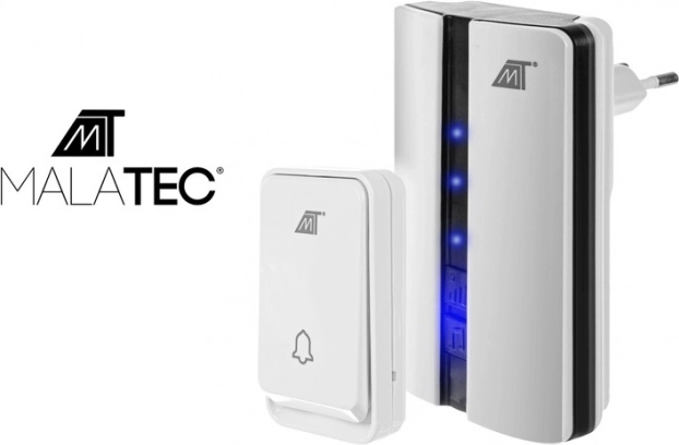 Soneria wireless albă de la Malatec este un accesoriu modern și util pentru orice casă sau apartament.