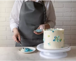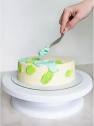 Echipat cu o bază detașabilă pentru manevrarea ușoară, mecanismul rotativ permite rotații line în ambele direcții, ceea ce facilitează aplicarea glazurii și a altor decorațiuni. Cele trei spatule de decorare incluse au modele diferite, care permit crearea unor suprafețe unice și creative pe torturile dvs.