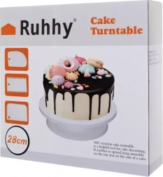 Suportul rotativ pentru tort Ruhhy este ajutorul ideal pentru oricine este interesat de decorarea torturilor la nivel profesional. Fabricat din plastic de calitate, care asigură durabilitatea și ușurința curățării. Acest suport nu doar că ușurează munca la decorare, ci și arată elegant ca platou pentru deserturile dvs.