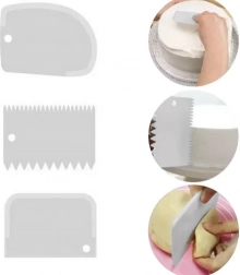 Pachetul include trei spatule de decorare, fiecare cu un design diferit, care vă ajută să creați texturi variate pe torturile dvs.