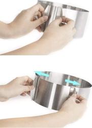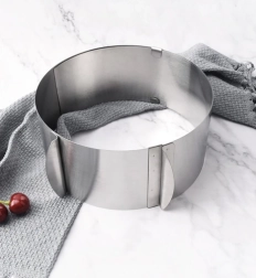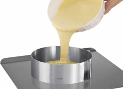 Oțelul inoxidabil de calitate este igienic, nu absoarbe mirosuri și este potrivit pentru cuptoare electrice, pe gaz și cu convecție. Pachetul include cleme pentru fixarea diametrului, datorită cărora inelul își păstrează forma atât la turnarea aluatului, cât și la coacere.