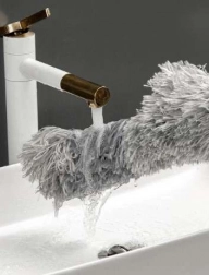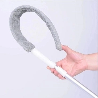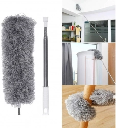 Cu mânerul telescopic realizat din oțel inoxidabil, ajungeți și la suprafețele greu accesibile, precum tavanele sau vârfurile dulapurilor înalte, fără riscul de cădere sau solicitarea corpului.