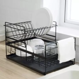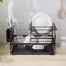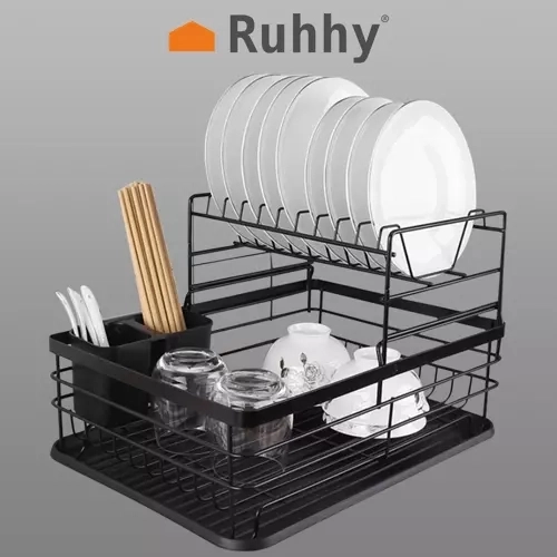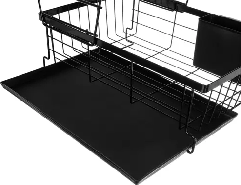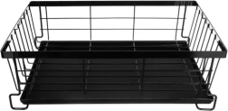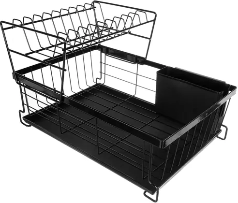 Acest uscător de vase pe două niveluri utilizează eficient spațiul de pe blat: etajul superior găzduiește până la 9 farfurii, cel inferior este ideal pentru boluri, pahare și căni. Construcția din oțel carbon cu finisaj durabil este rezistentă la umiditate și la utilizarea zilnică, în timp ce piciorușele antiderapante asigură stabilitate și siguranță chiar și la o încărcare mai mare.