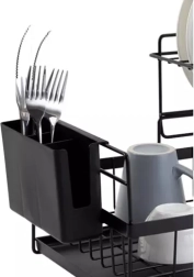 Sunt incluse coșul detașabil pentru tacâmuri cu două compartimente separate pentru o organizare clară și tava de scurgere ușor de spălat, care colectează apa și menține blatul de bucătărie uscat. Finisajul universal negru și liniile curate în stil loft se potrivesc perfect atât în bucătării moderne, cât și clasice.