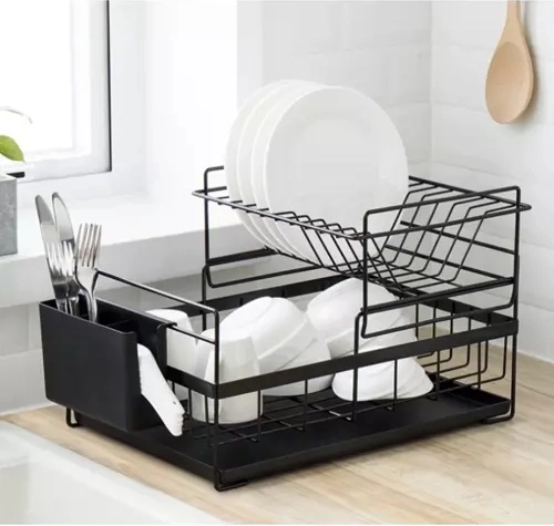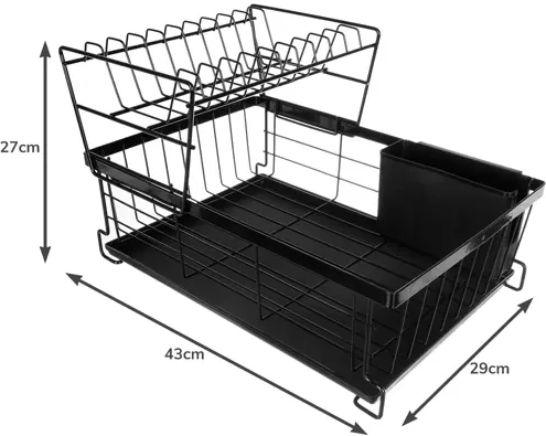 Etajul superior găzduiește până la 9 farfurii, iar cel inferior este ideal pentru boluri, pahare și căni. Datorită celor două niveluri, usuci mai multe vase pe un spațiu mai mic și păstrezi blatul ordonat.