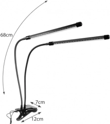 Această lampă de creștere practică, cu două capete și 40 LED-uri, combină spectrul roșu (630 nm) și albastru (470 nm), care sprijină fotosinteza, înrădăcinarea, creșterea și înflorirea. Datorită gâturilor flexibile, direcționați cu ușurință lumina exact acolo unde plantele au nevoie, iar clema permite fixarea pe raft sau masă.