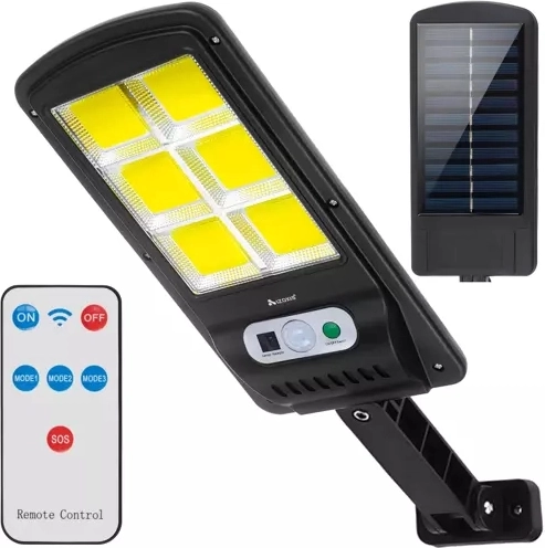 Lampă LED solară puternică pentru utilizare în exterior cu 120 diode COB, oferind iluminare ecologică și economică pentru locuința, grădina sau terasa dumneavoastră.