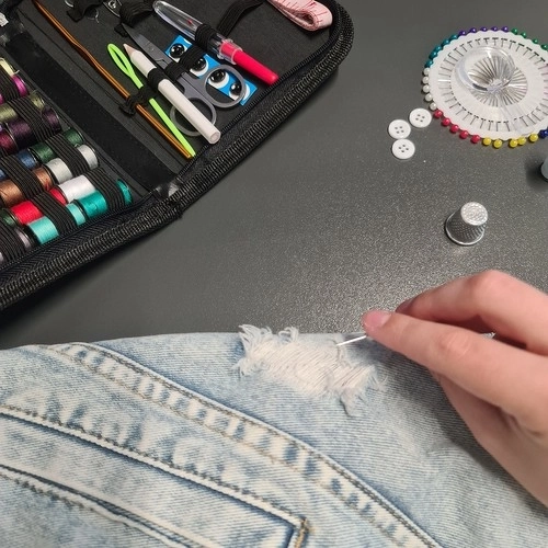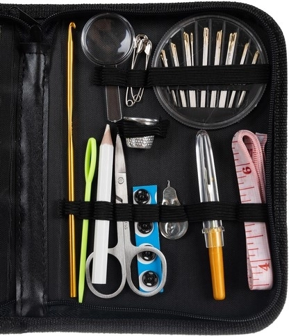 Setul include unelte și accesorii pentru reparații și ajustări rapide ale hainelor, economisind timp și costuri pentru servicii profesionale.