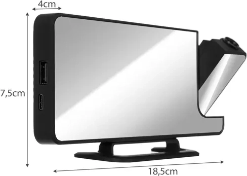 - Funcții 4-în-1: Ceas, desteptător, oglindă și proiector.
