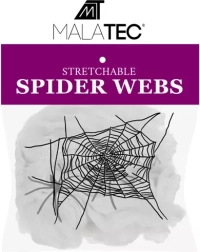 Pânza de păianjen artificială MALATEC este o decorațiune indispensabilă pentru Halloween. Materialul elastic se întinde, se rupe și se modelează ușor, astfel încât creați în câteva clipe o pânză cu aspect autentic pe mobilă, balustrade, uși sau în vitrine. Fibrele sunt dense și aderente, iar după întindere oferă acoperire mare, de până la 2,5 m² și un aspect perfect înfricoșător.