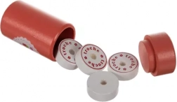 Include și model dentar cu dinți detașabili pentru antrenarea igienei orale corecte, stetoscop, termometru, seringă, „medicamente” și alte accesorii. Prelucrarea din lemn este atemporală, durabilă și plăcută – ideală pentru joaca zilnică.