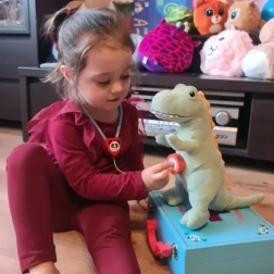 De la stetoscop și termometru la foarfecă, pensetă și „medicamente”. Copiii au la îndemână tot ce le trebuie pentru examinarea pacientului și îngrijirea dințișorilor.