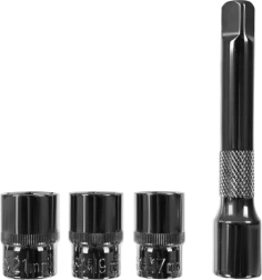 În pachet găsiți tot ce aveți nevoie: 3 capete 17/19/21 mm și un prelungitor pentru acces îmbunătățit. Construcția din oțel de calitate rezistă la deformare și fisurare, iar elementele din silicon cresc confortul în utilizare. Este inclus și un toc rezistent, care protejează unealta la depozitare și transport.